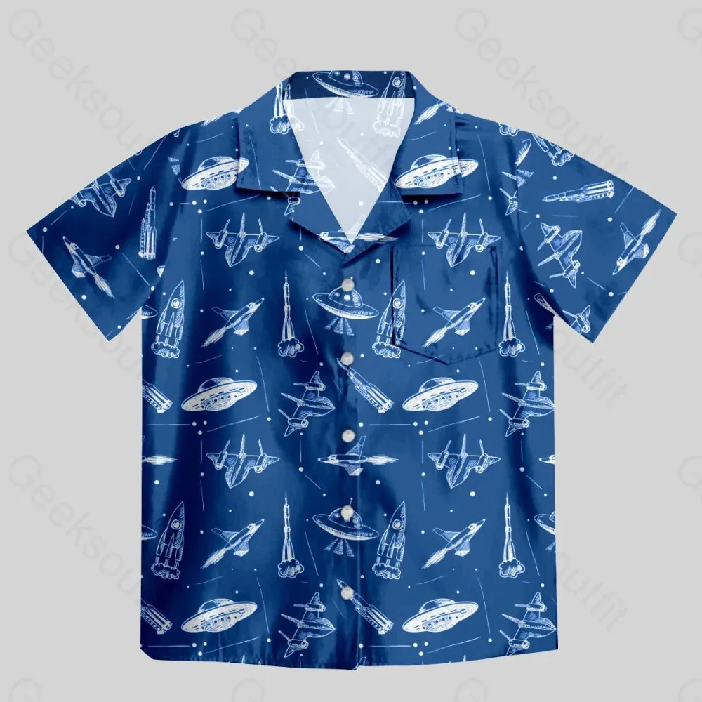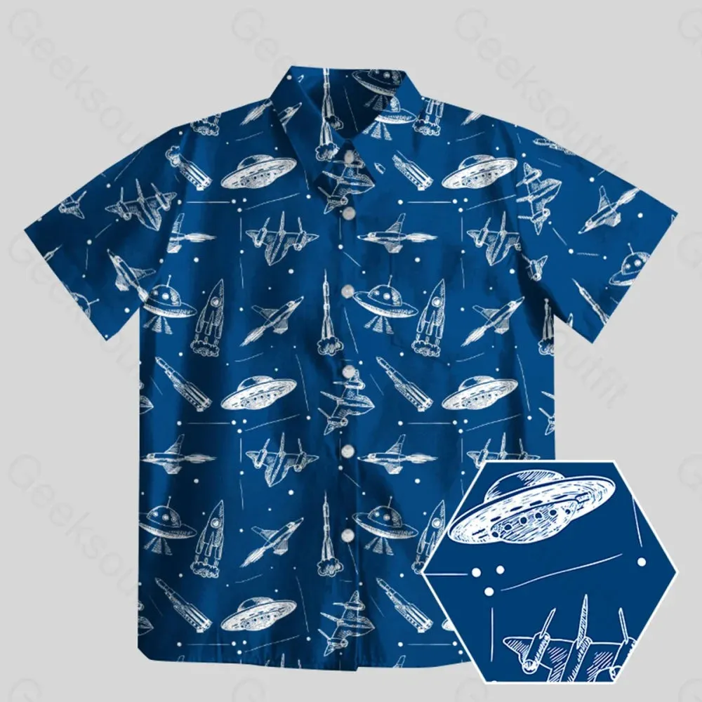 Aircraft Blueprint Navy Button Up Pocket Shirt