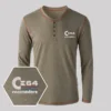 C64 Embroidered Long Sleeve Henley Shirts