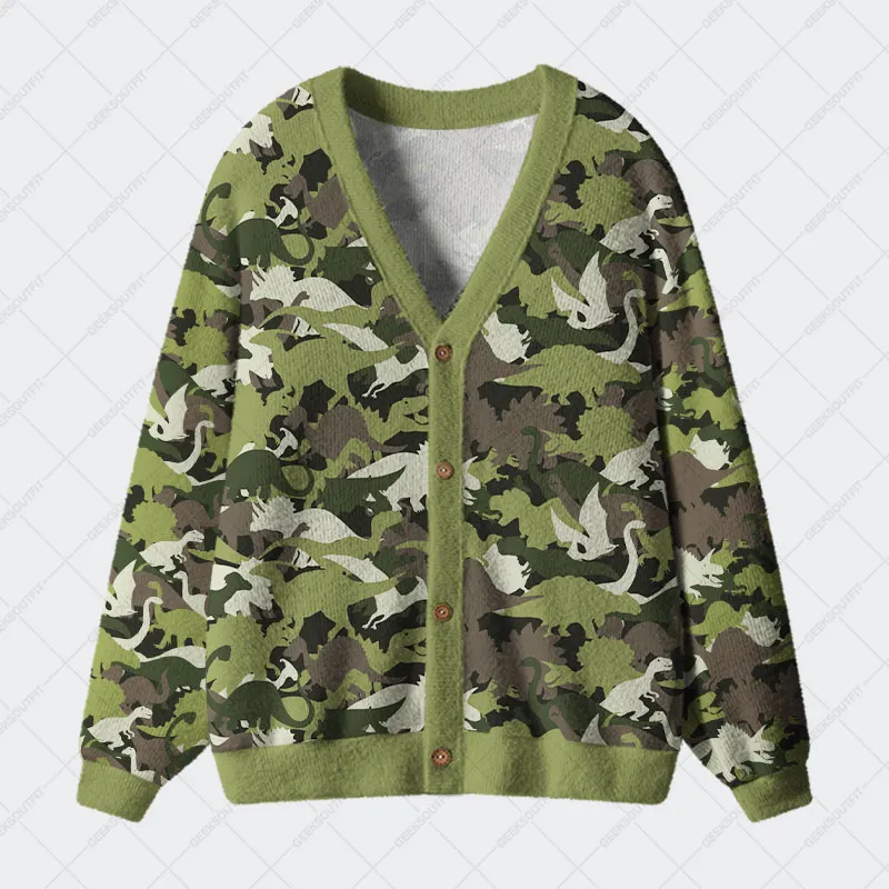 Camouflage Dinosaur Geek Ugly Cardigan Sweaters