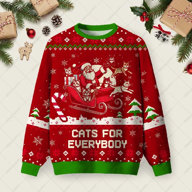 Christmas Cat Santa Cat Lover Ugly Christmas Fuzzy Fleece Sweatshirt