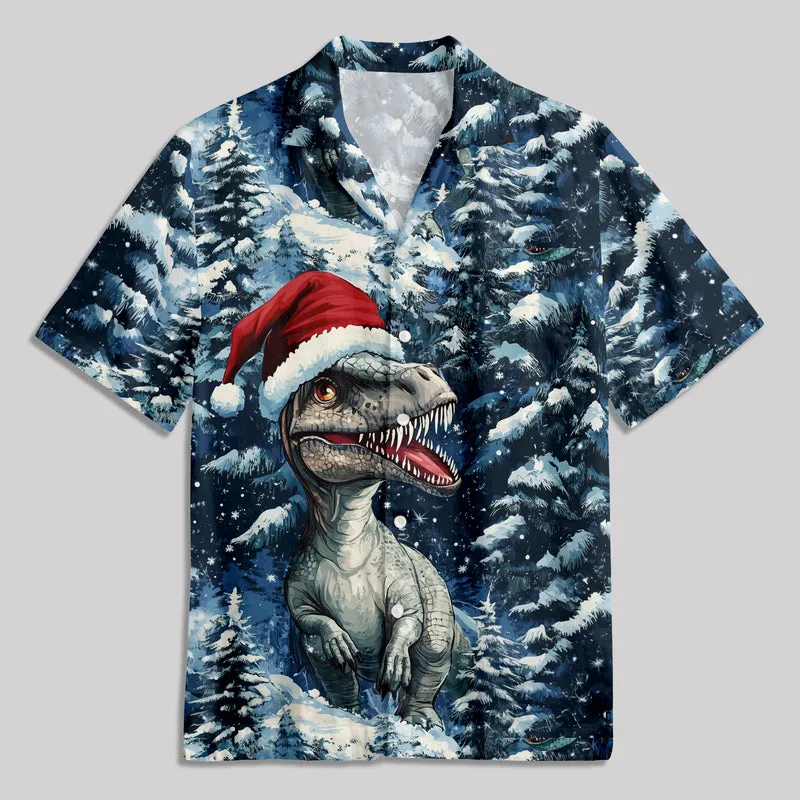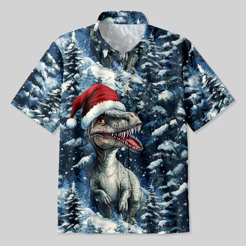 Christmas Cedar Jurassic Dinosaur Button Up Pocket Shirt