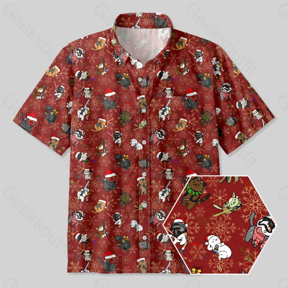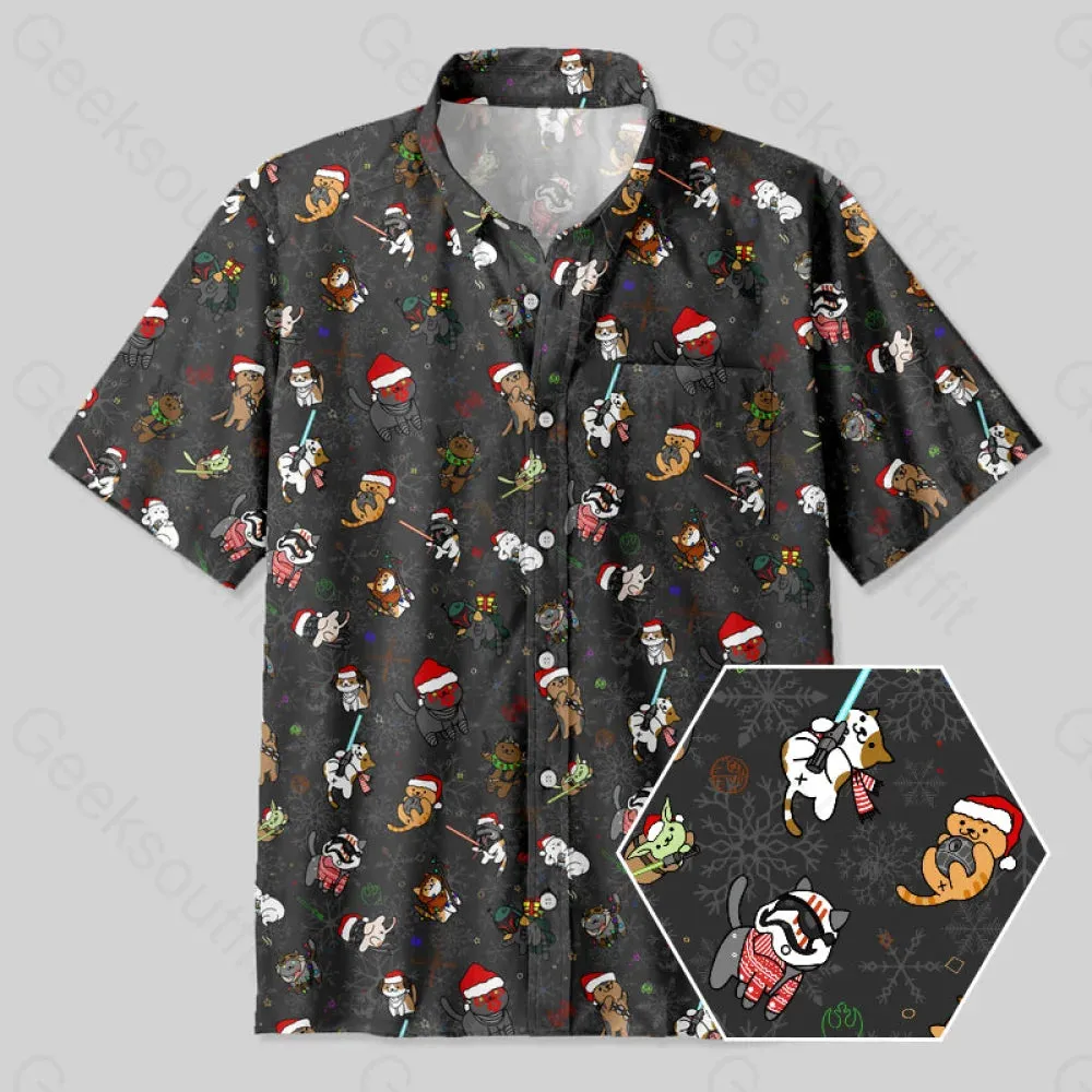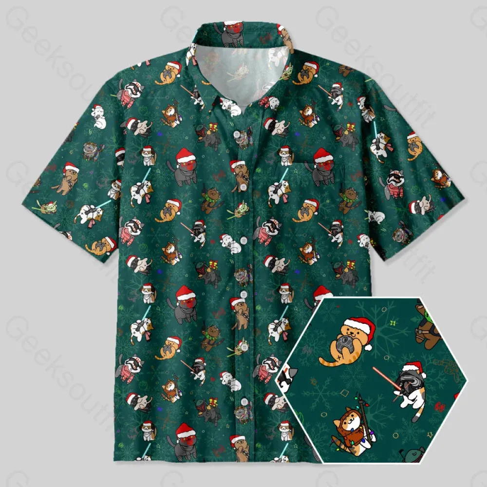 Christmas Light Sword Cat Button Up Pocket Shirt