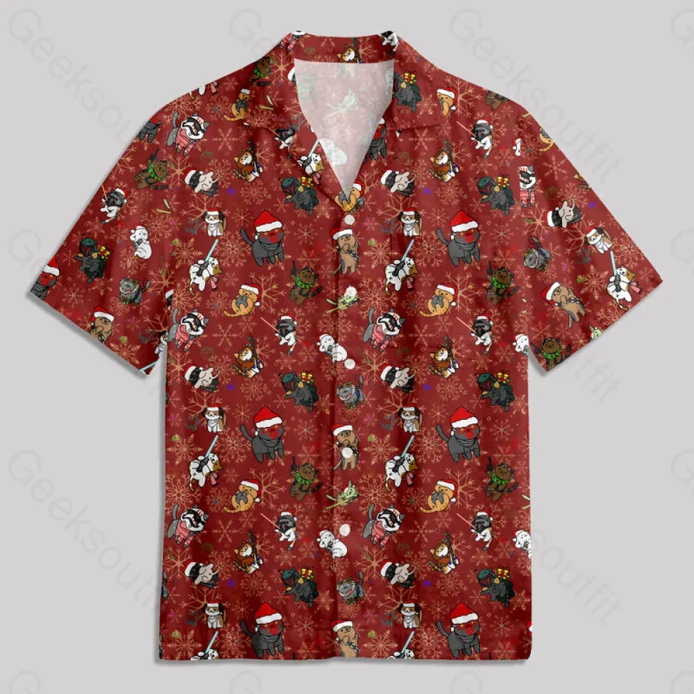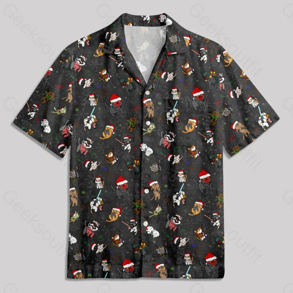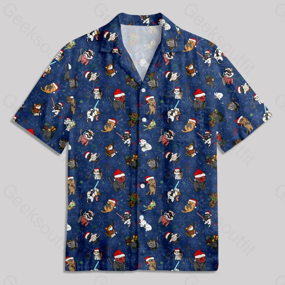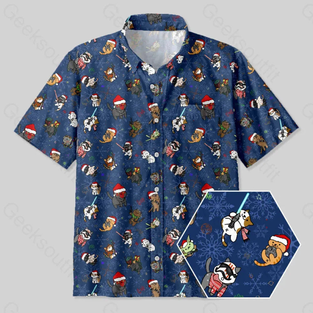 Christmas Light Sword Cat Button Up Pocket Shirt
