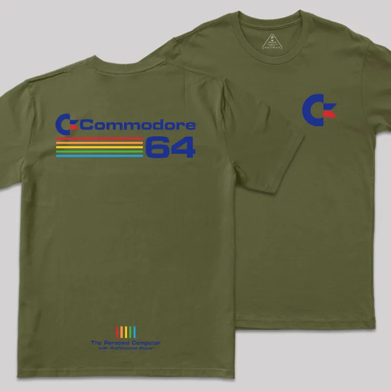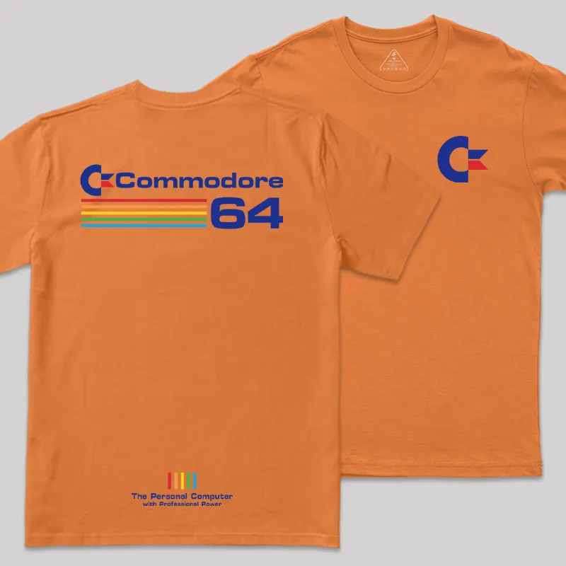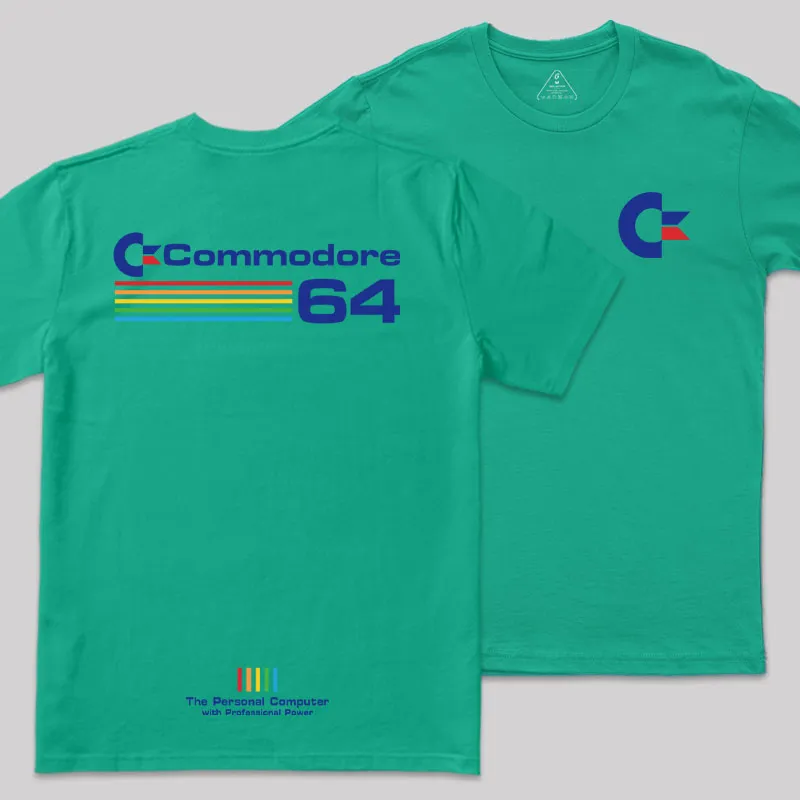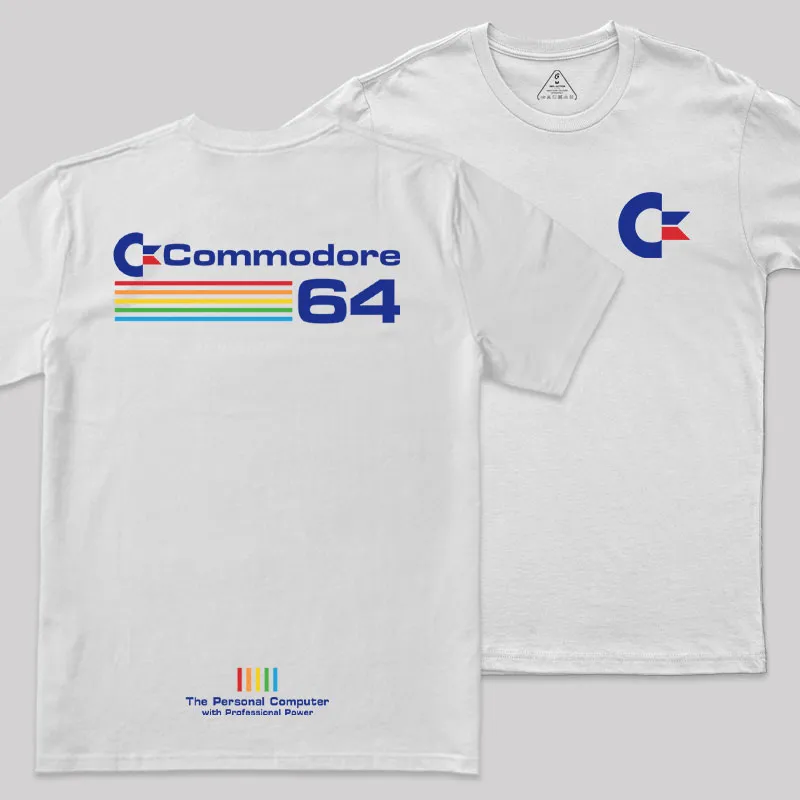 Commodore 64 Blue Front and Back Printed Geek T-Shirt