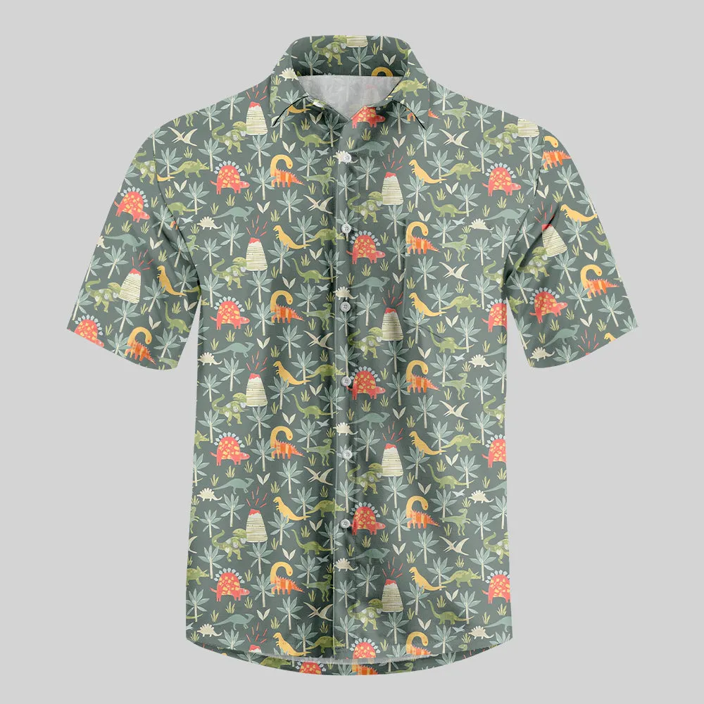 Dinosaur Primordial Forest Button Up Pocket Shirt