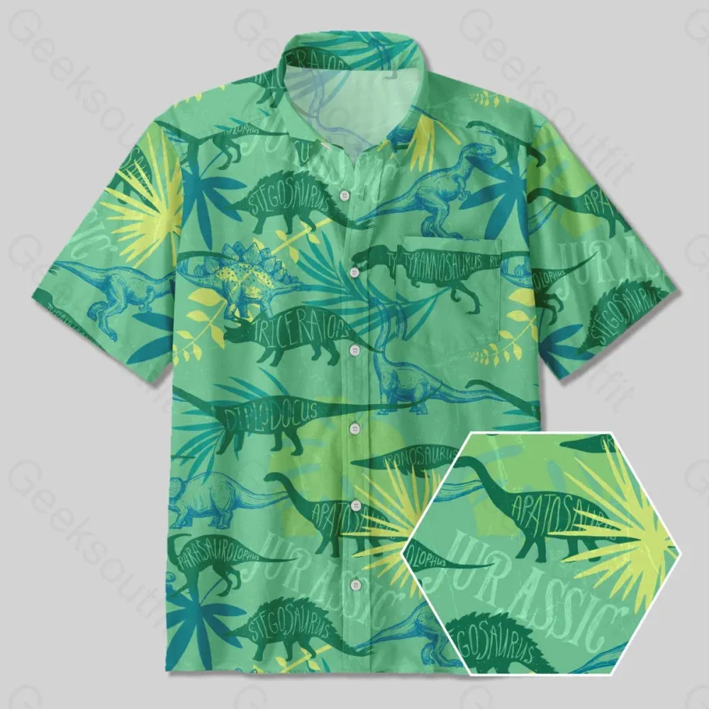 Dinosaurs of the Jurassic World Button Up Pocket Shirt