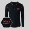 Don’t Panic Embroidered Long Sleeve Henley Shirts