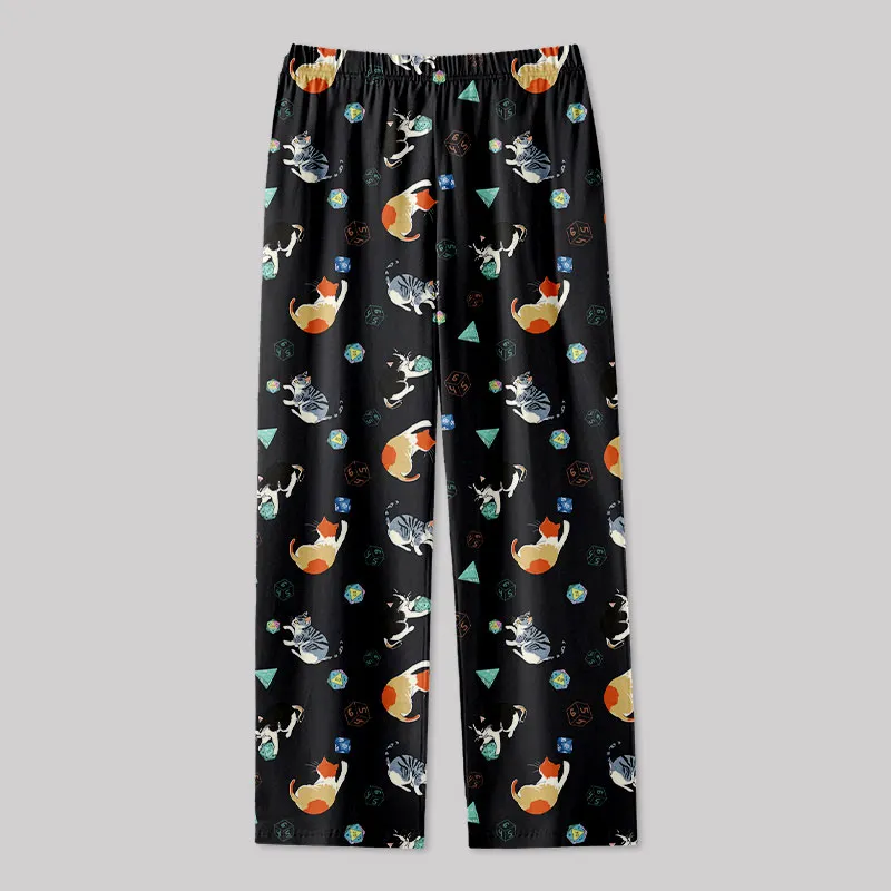 Feline Fun with DnD Dice Black Geek Loungewear Pants