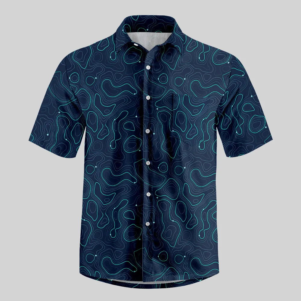 Geographic Contour Navy Blue Button Up Pocket Shirt