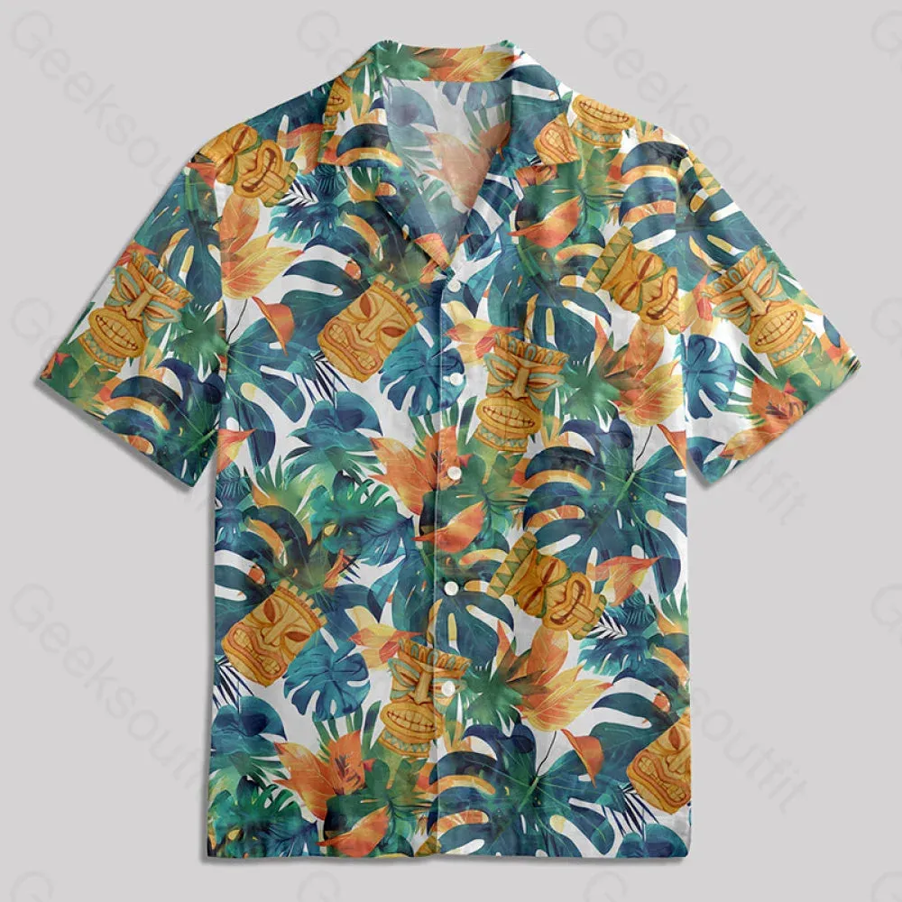 Hawaiian Tiki Mask Button Up Pocket Shirt