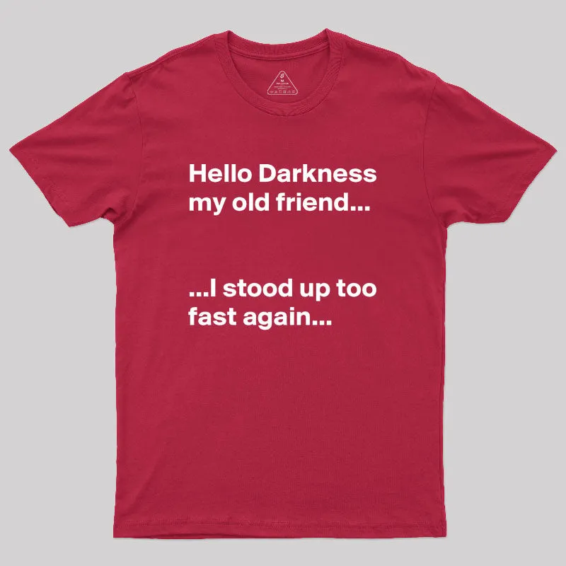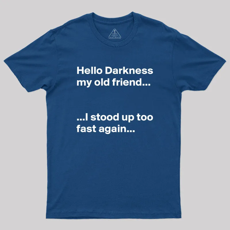Hello Darkness My Old Friend I Stood Up Too Fast Again Geek T-Shirt