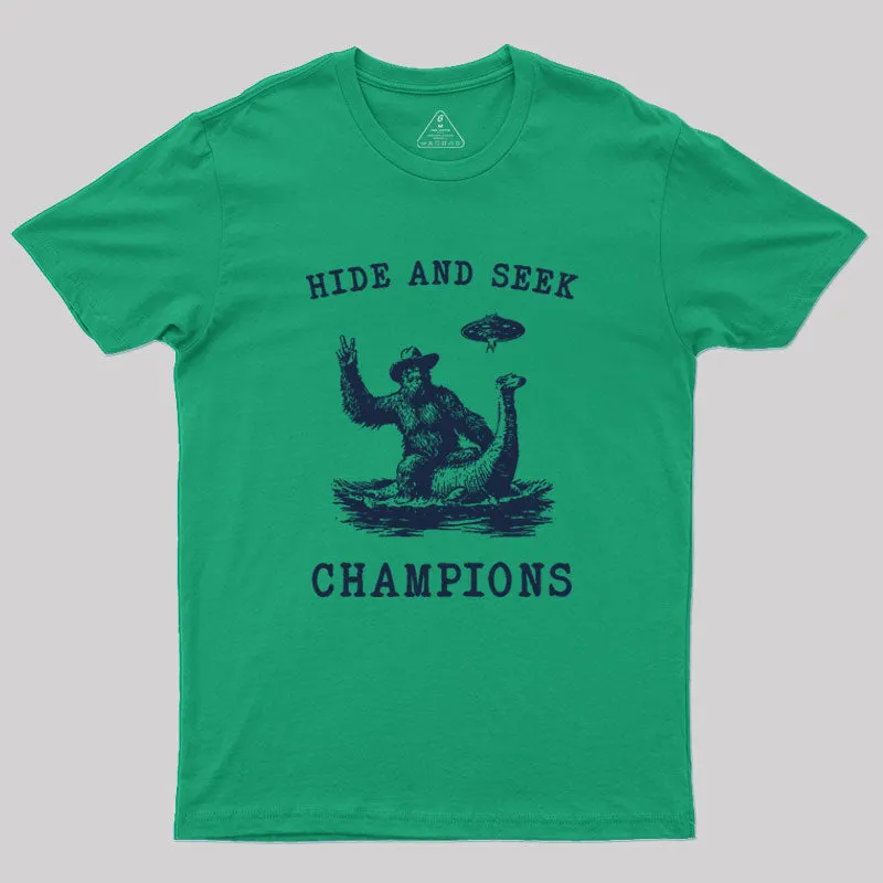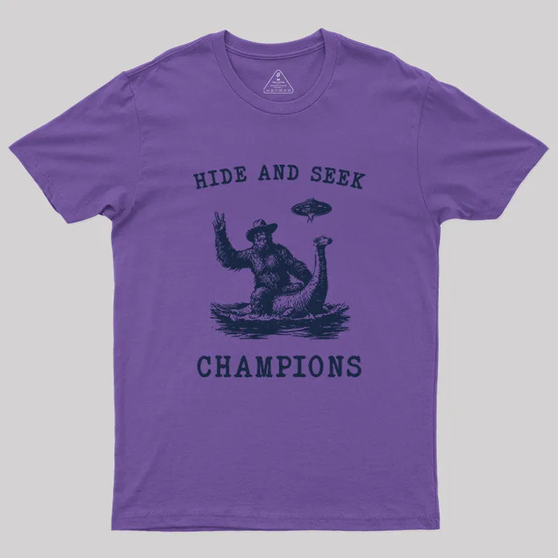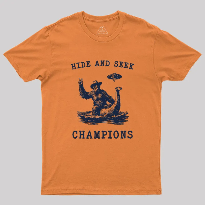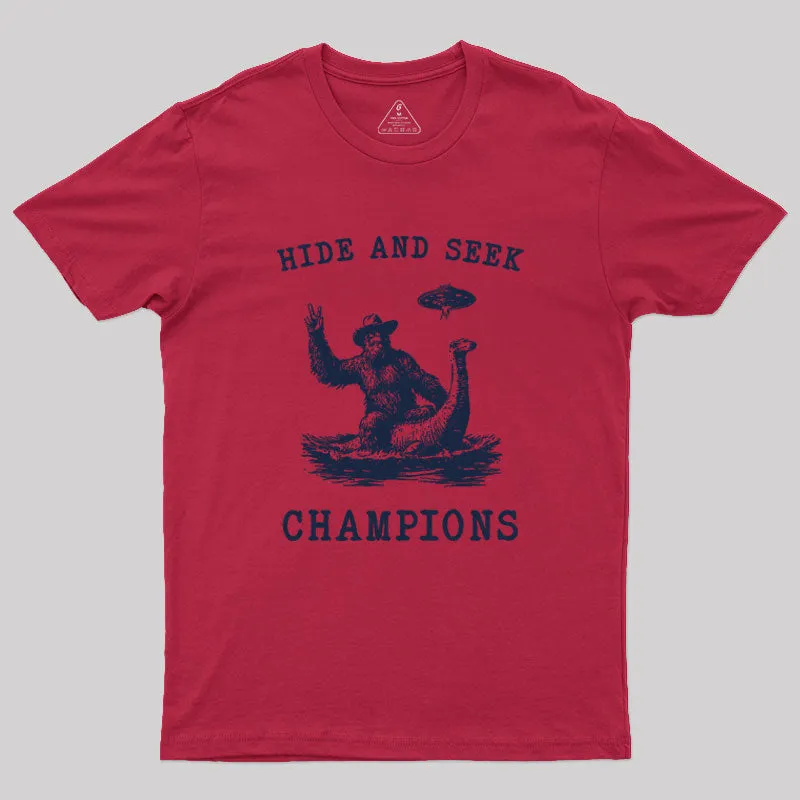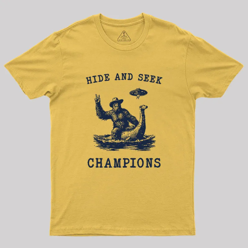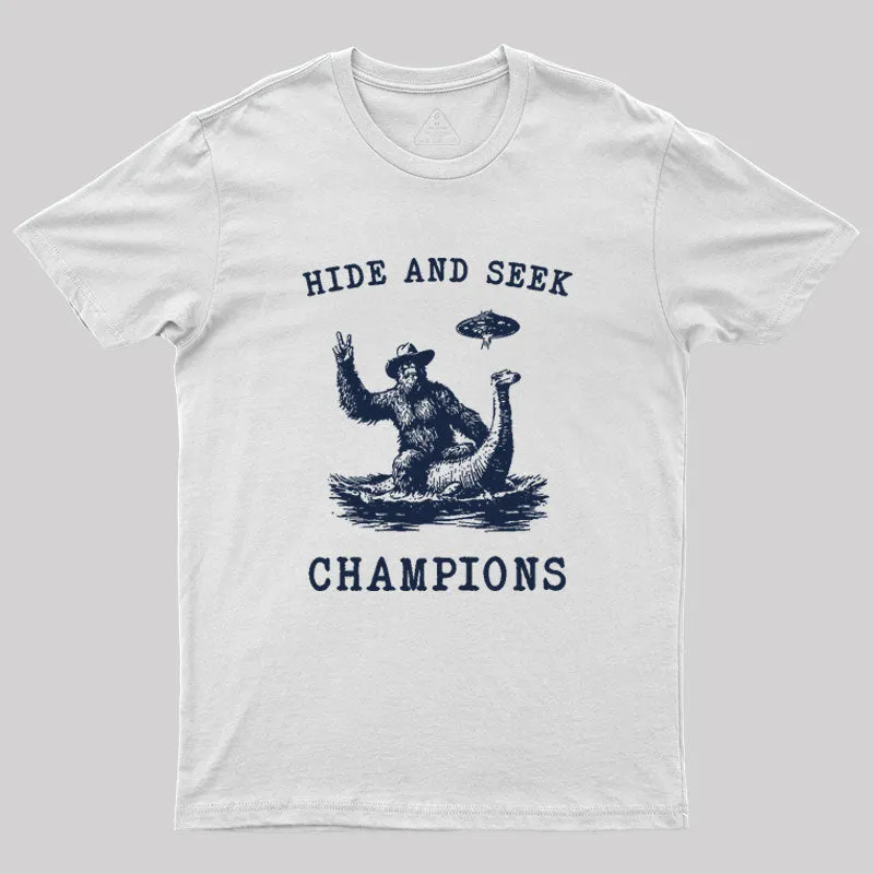 Hide And Seek Ufo Retro Bigfoot Riding Dinosaur Geek T-Shirt
