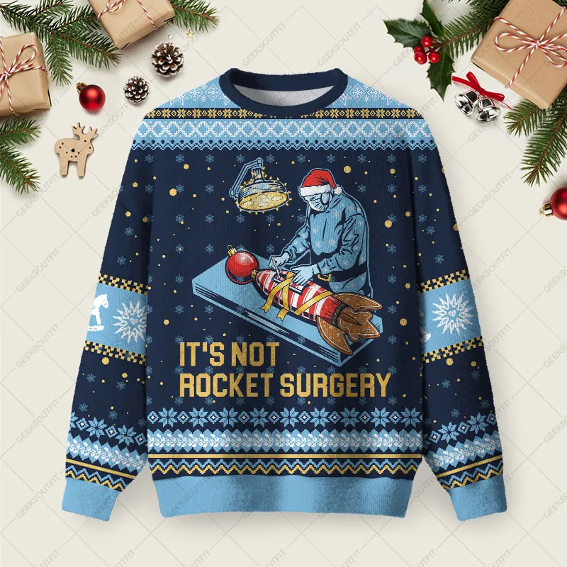 It Is Not Rocket Surgery Ugly Christmas Fuzzy Fleece Sweatshirt