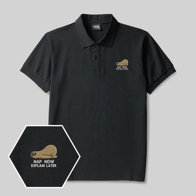 Nap Now Explain Later Geek Embroidered Polo Shirt