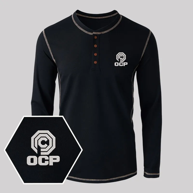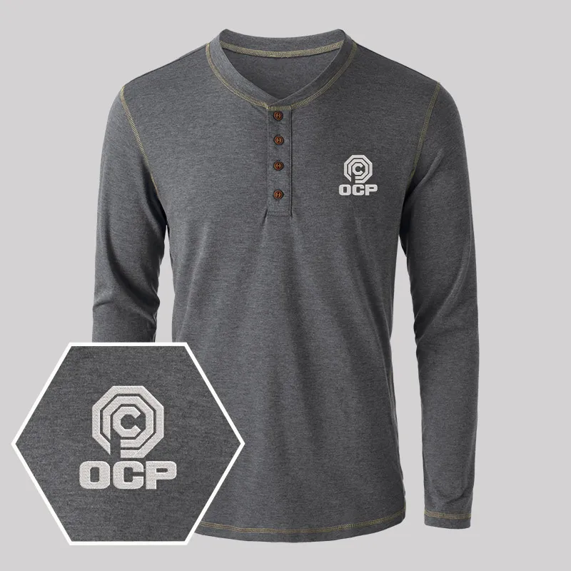 OCP Embroidered Long Sleeve Henley Shirts