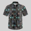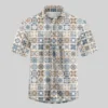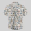 Portuguese Retro Tile Pattern Button Up Pocket Shirt