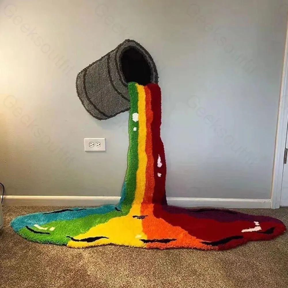 Rainbow Paint Bucket Funny Imitation Wool Rug