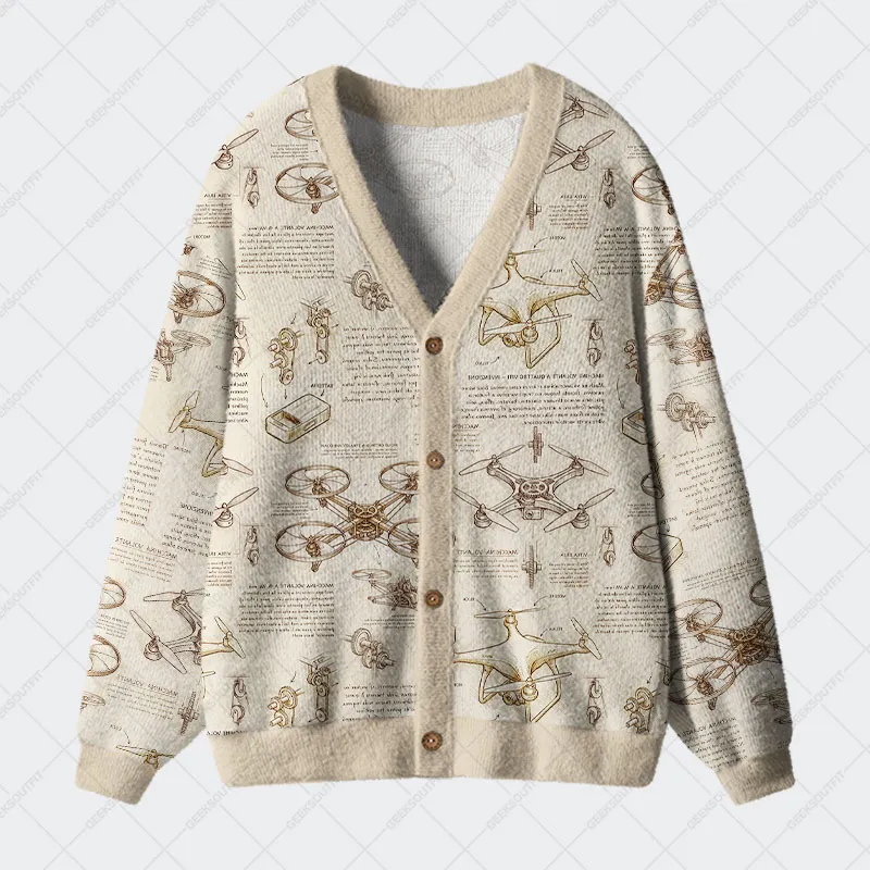 Retro Mechanica Geek Ugly Cardigan Sweaters