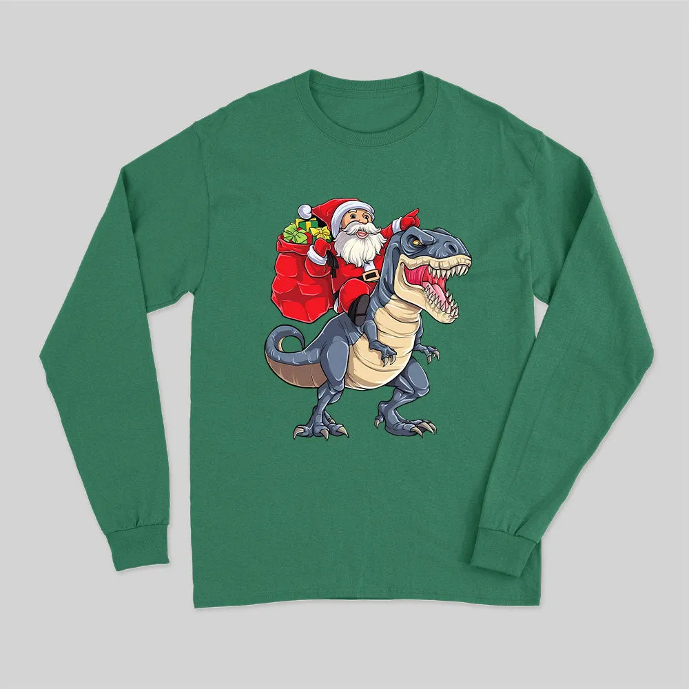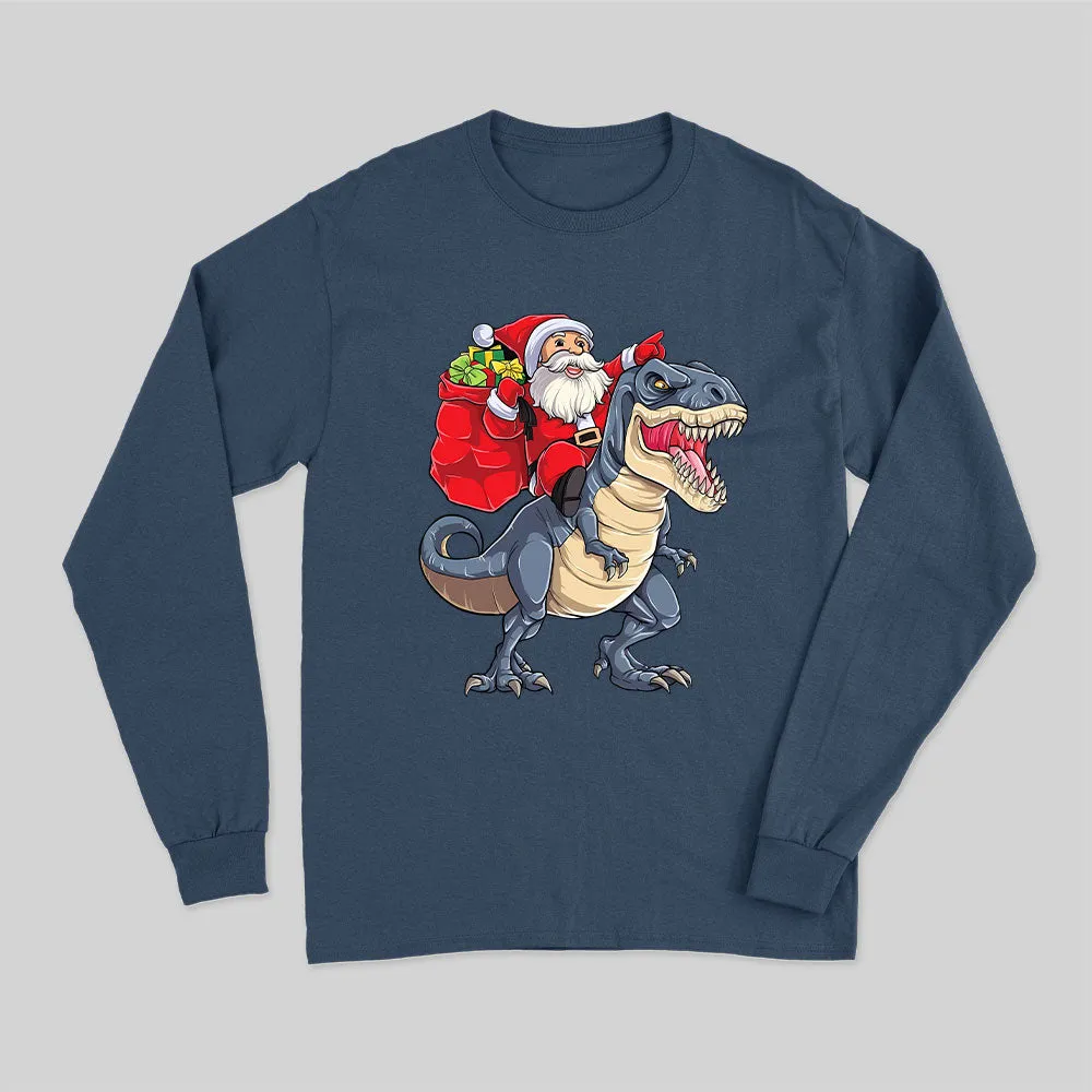 Santa Riding Dinosaur Long Sleeve T-Shirt