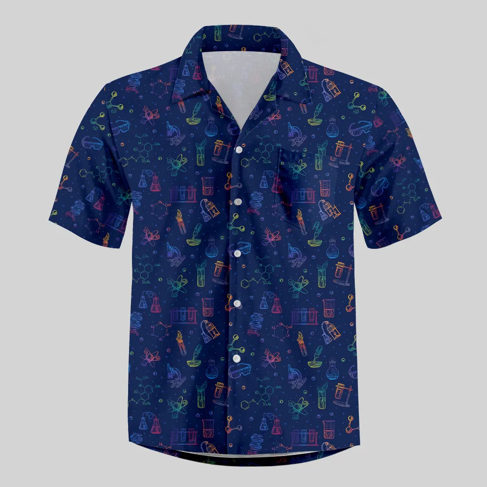 Science Icon Dark Blue Button Up Pocket Shirt