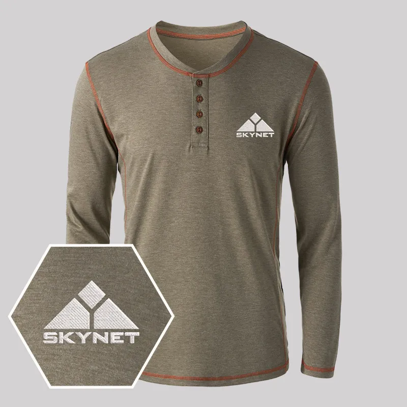 Skynet Embroidered Long Sleeve Henley Shirts