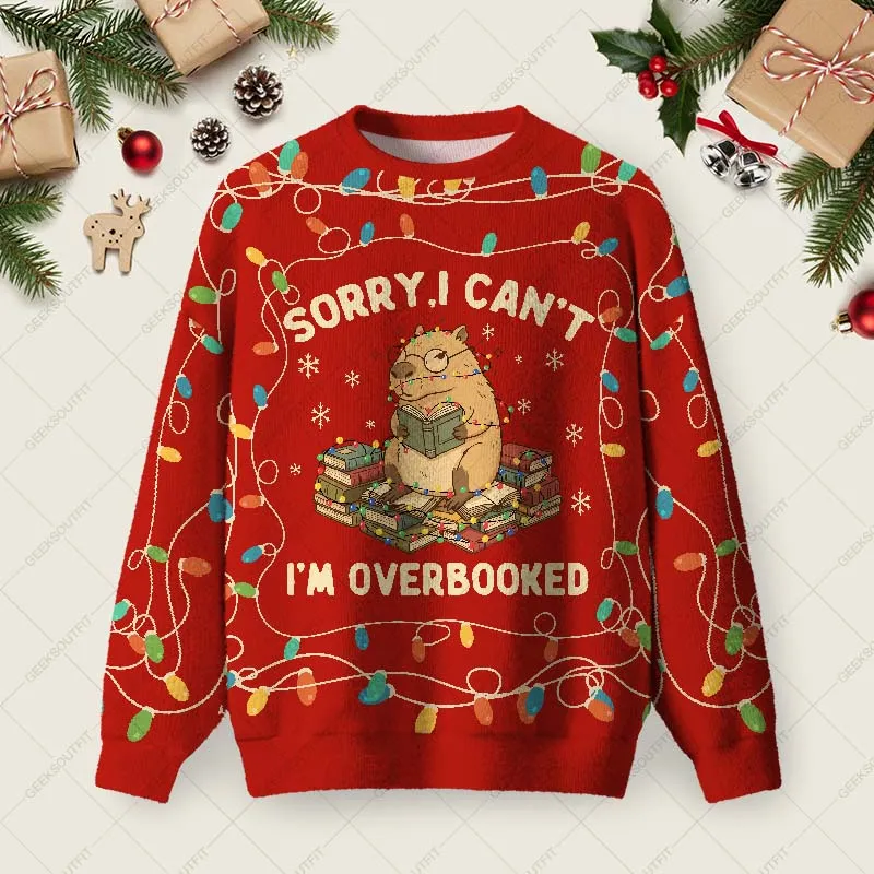 Sorry I Can’t I’m Overbooked Ugly Christmas Fuzzy Fleece Sweatshirt