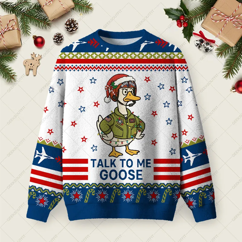 Talk to Me Goose Ugly Christmas Fuzzy Fleece Sweatshirt