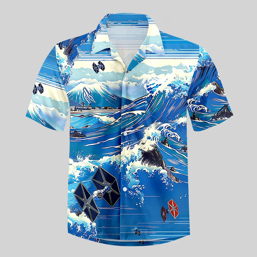 Tie Fighter and Waves Button Up Pocket Shirt
