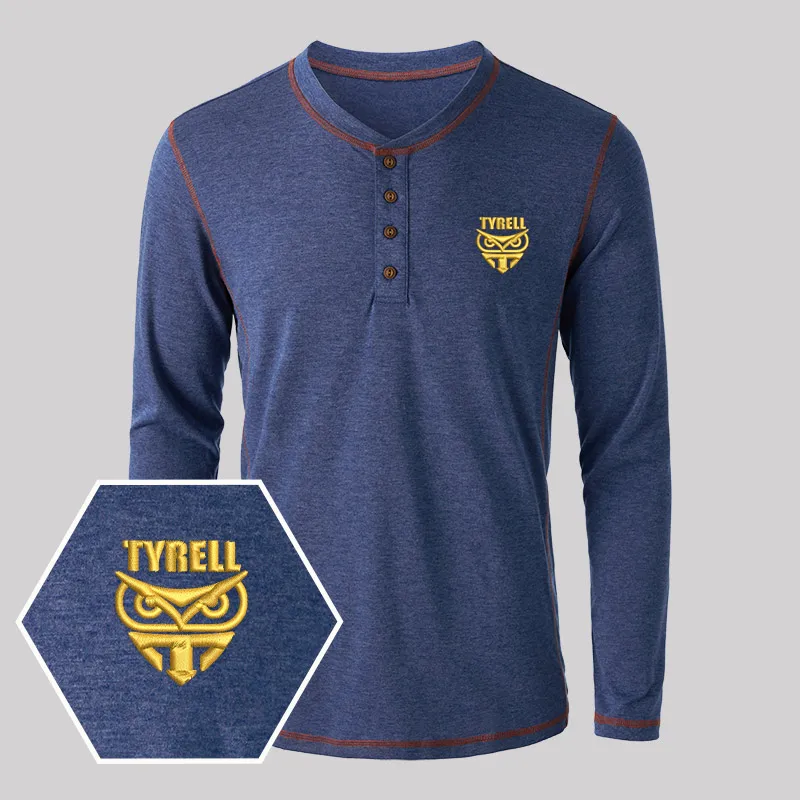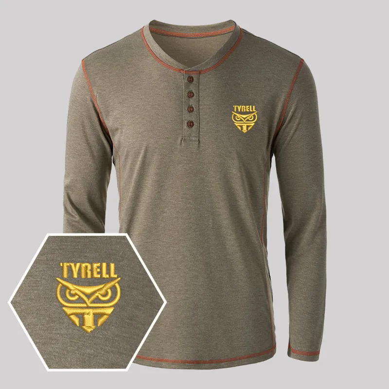 Tyrell Corporation Geek Embroidered Long Sleeve Henley Shirts