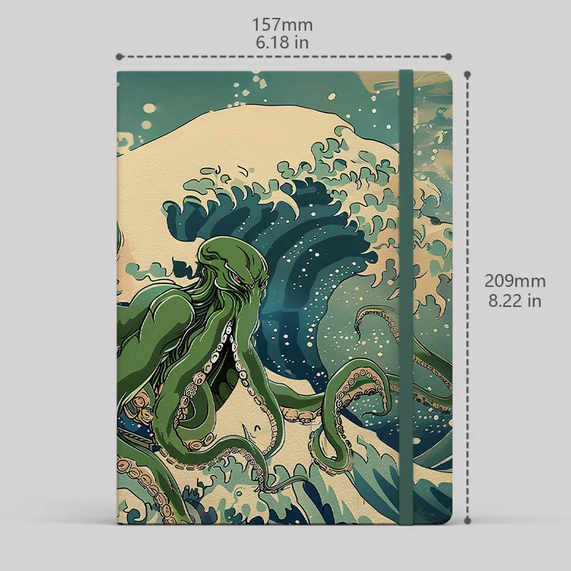Ukiyoe Waves Cthulhu Green Notebook