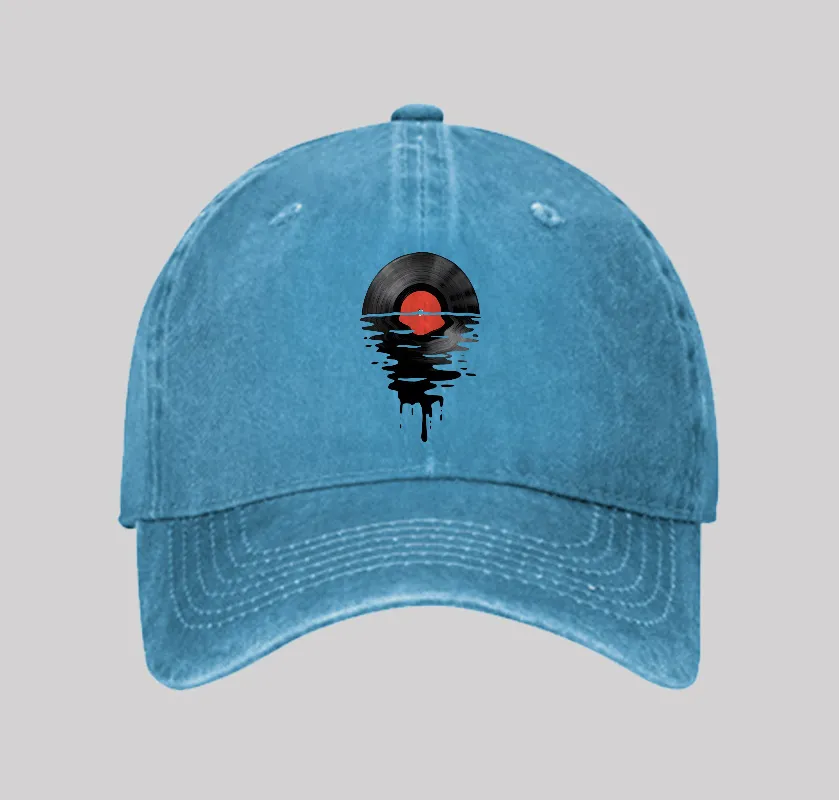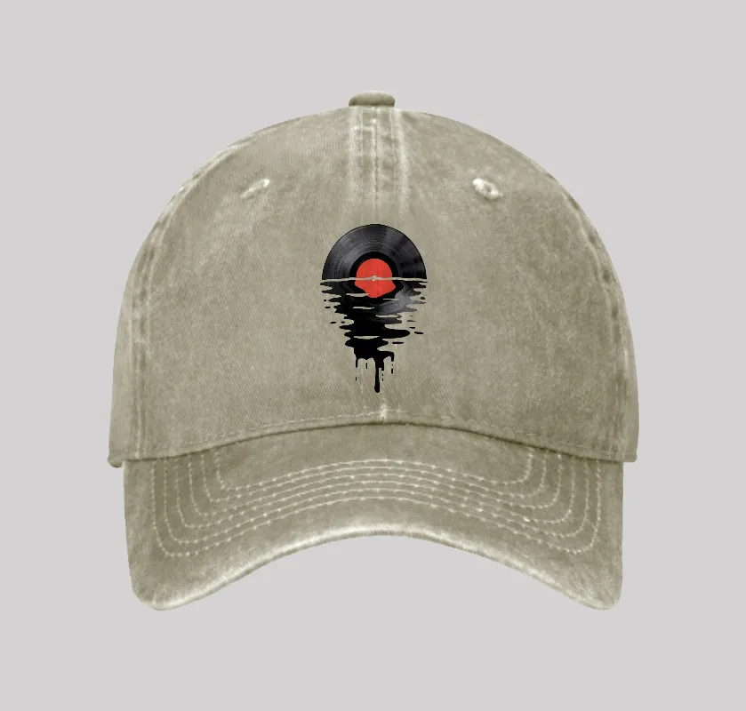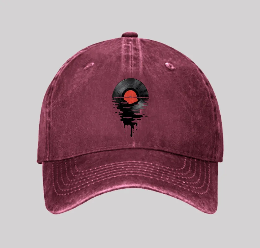Vinyl LP Music Record Sunset Red Geek Washed Vintage Baseball Cap