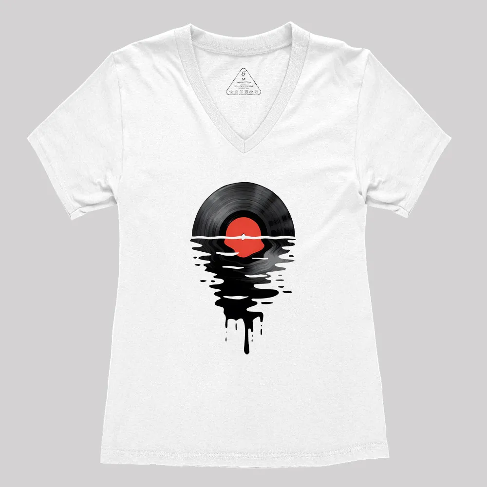 Vinyl LP Music Record Sunset Red Geek Women’s V-Neck T-shirt