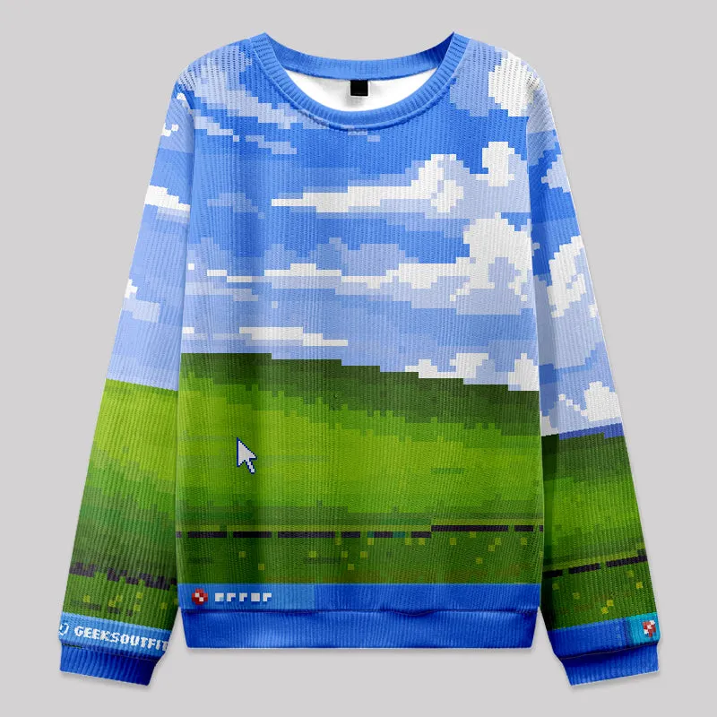 Win XP Wallpaper Pixel Fuzzy Fleece Sweatshirt